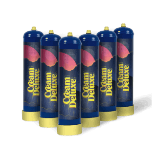 Pack of 6 Cream Deluxe Cylinders with nozzles plus Free Cream Deluxe Bag.Cream chargers by Cream Deluxe are a must have for every respectable caterer. The best product for whipping up cream quick and effectively.